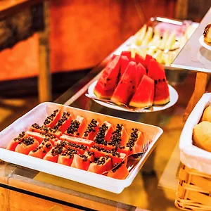 O restaurante serve um café da manhã bufê todas as manhãs. O restaurante Aeroilha Restaurante Pizzaria serve cozinha brasileira e fica a 7 minutos a pé de Pousada Catamarã Brasil.